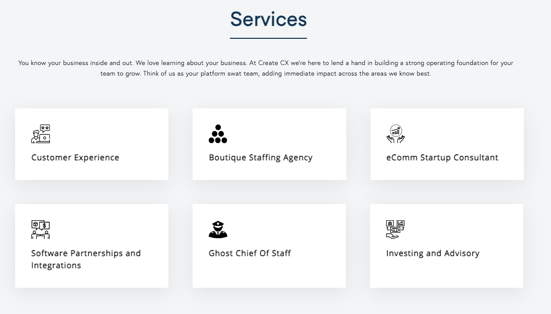 Trusted by leading brands and start-ups alike, Create CX offers a range of services including investing and advisory, boutique staffing agency, customer experience software, partnerships and integrations, and more.